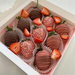 Роскошный набор свежей спелой клубники в двух видах шоколада. Утончённое сочетание цветов позволяет нашим кондитерам сотворять подобные нежные композиции. Набор станет идеальным украшением вашего романтического вечера Указаны примерные размеры, чтобы вы могли представить внешний вид и масштаб, но фактически размеры могут немного отличаться.