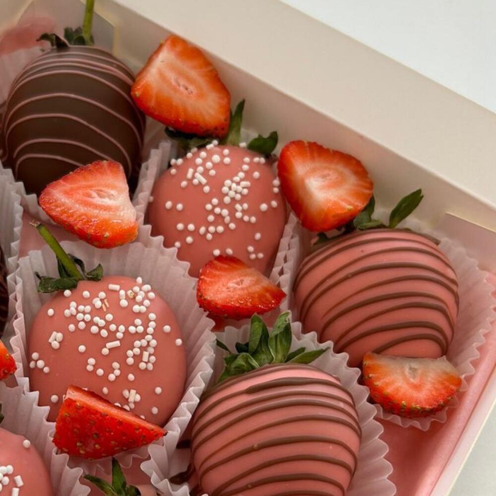 Роскошный набор свежей спелой клубники в двух видах шоколада. Утончённое сочетание цветов позволяет нашим кондитерам сотворять подобные нежные композиции. Набор станет идеальным украшением вашего романтического вечера Указаны примерные размеры, чтобы вы могли представить внешний вид и масштаб, но фактически размеры могут немного отличаться.