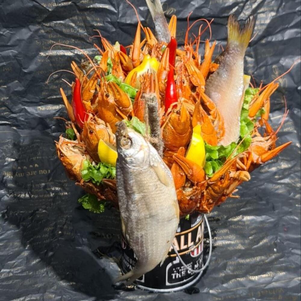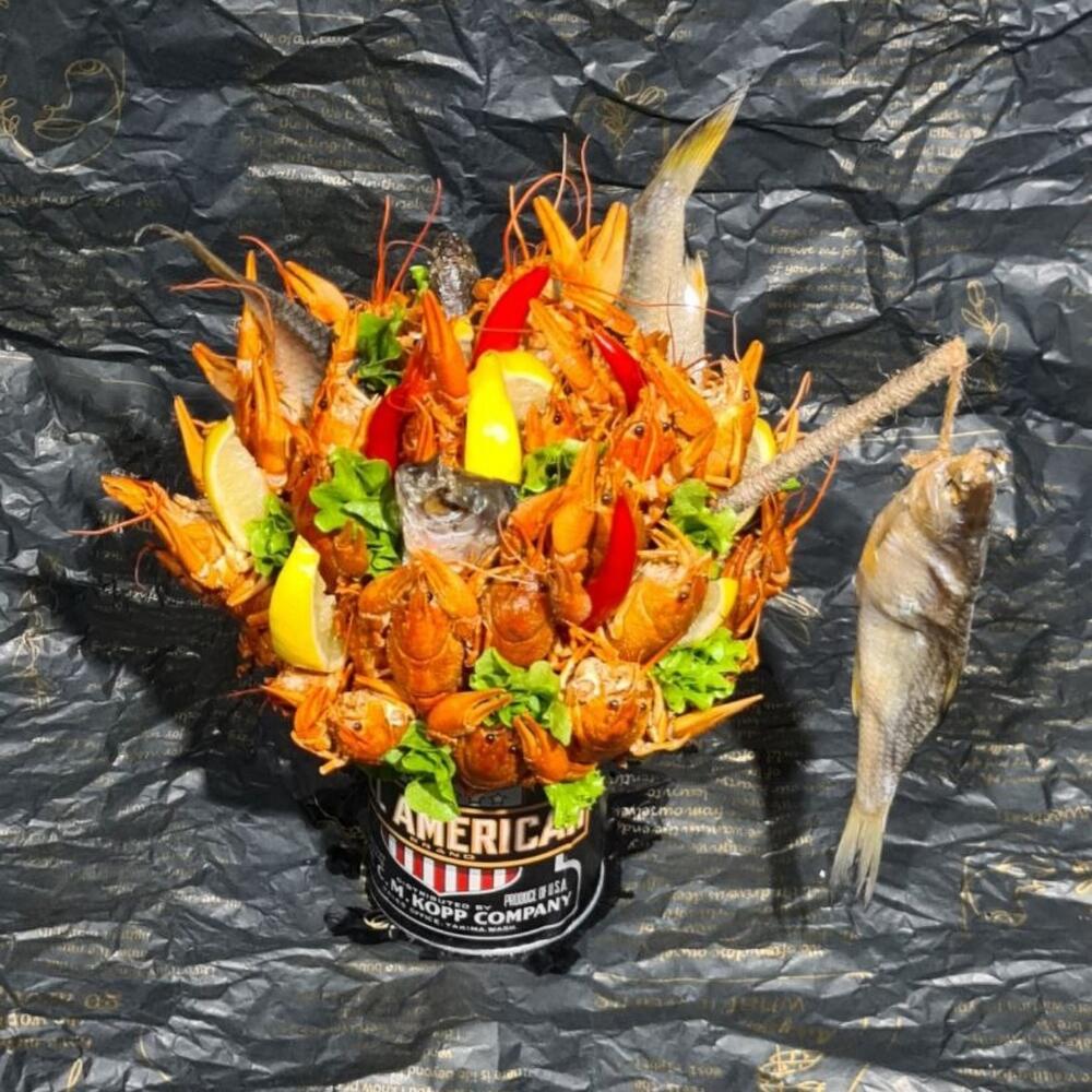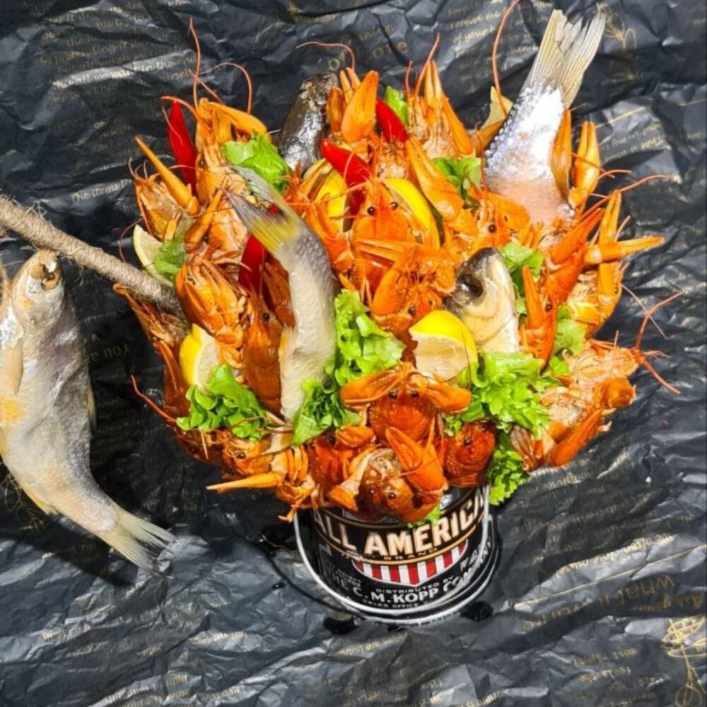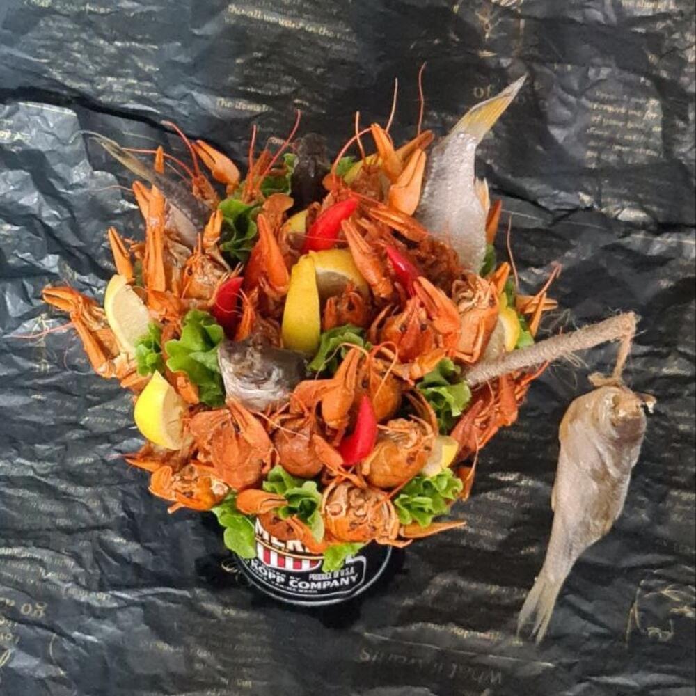 Лимон - 1 шт. Перец чили - 5 шт. Лист салата - 1 шт. Вобла сушеная - 3 шт. раки вареные - 30 шт.