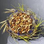 Кешью - 58 гр. Фундук - 27 гр. пекан - 37 гр. макадамия - 20 гр. миндаль чищеный - 73 гр. грецкий чищенный - 105 гр. бадам - 34 гр.