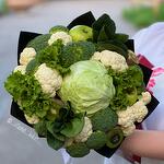 оригинальный овощной букет, составленный из свежей капусты, брокколи, цветной капусты, зелёных яблок, киви, листового салата и шпината 🤩🥦🫑