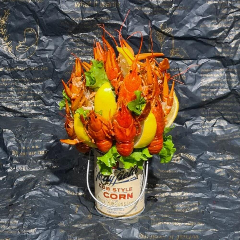 Лимон - 1 шт. Лист салата - 1 шт. раки вареные - 15 шт.