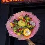 Клубника - 10 шт. Киви - 2 шт. Апельсин - 2 шт. Голубика - 10 шт. манго - 1 шт. Питахайя - 1 шт. Виноград гроздь - 1 шт. бананы - 5 шт.