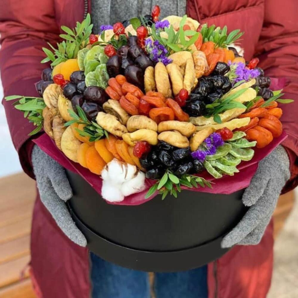 Ананас - 10 шт. Киви - 20 шт. Инжир - 15 шт. Вишня - 10 шт. Курага - 20 шт. Чернослив - 20 шт. Финики - 15 шт. дыня рулетик - 3 шт.