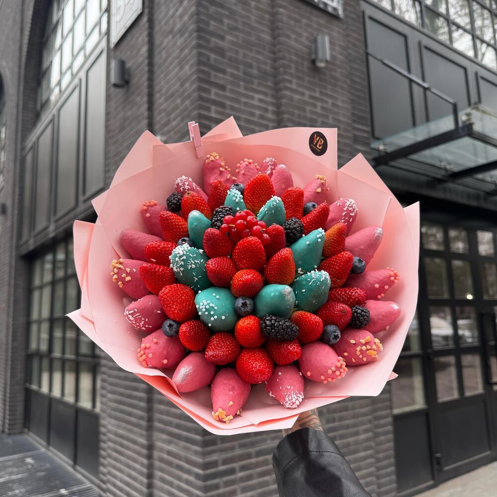 Клубника - 600 гр. Ежевика - 5 шт. Голубика - 7 шт. Клубника в шоколаде - 600 гр. Смородина красная - 1 шт.
