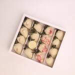 16 клубник в белом бельгийском шоколаде В дополнении используются посыпки: сублимированная малина, кокосовая стружка Шоколад ручной работы