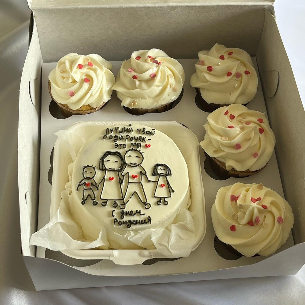 Заказывала бенто-торт и 5 капкейков, дизайн был исполнен в соответствии с заказом и очень красиво! Все очень вкусно, спасибо огромное 🫶🏻