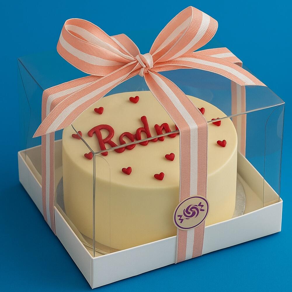 Нежный бисквит с лёгкой пропиткой и воздушным кремом. Украшен кремовой надписью Rodnoi и мини-сердечками ❤️
