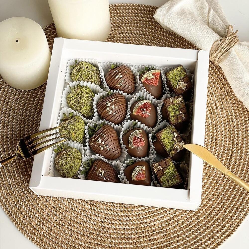 Клубничный бокс "Инжир" из клубники в молочном шоколаде с мини шоколадками