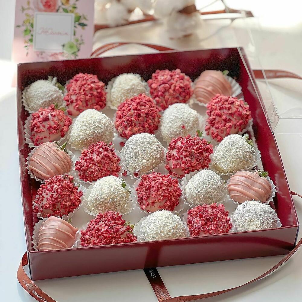 Клубничный бокс "Малинка", запомнится особенным вкусом сочной клубники в нежнейшем шоколаде!