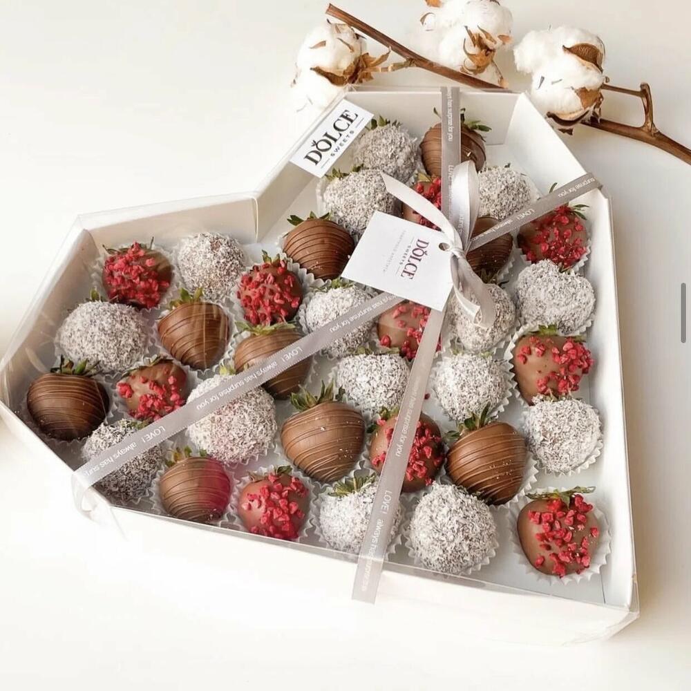 Клубничный бокс "Первое свидание", запомнится особенным вкусом сочной клубники в нежнейшем шоколаде!