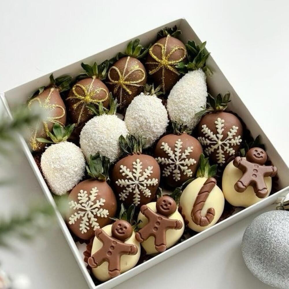 Chocolate-covered strawberries for a New Year's gift 🎄❤️ Set of 16 pcs, strawberries in white and milk chocolate ✨