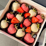 Сет из свежей крупной клубники в бельгийском белом и розовом шоколаде, украшенный ягодами клубники и черники. Нежное оформление и сочный вкус — идеальный подарок для близких или для себя.