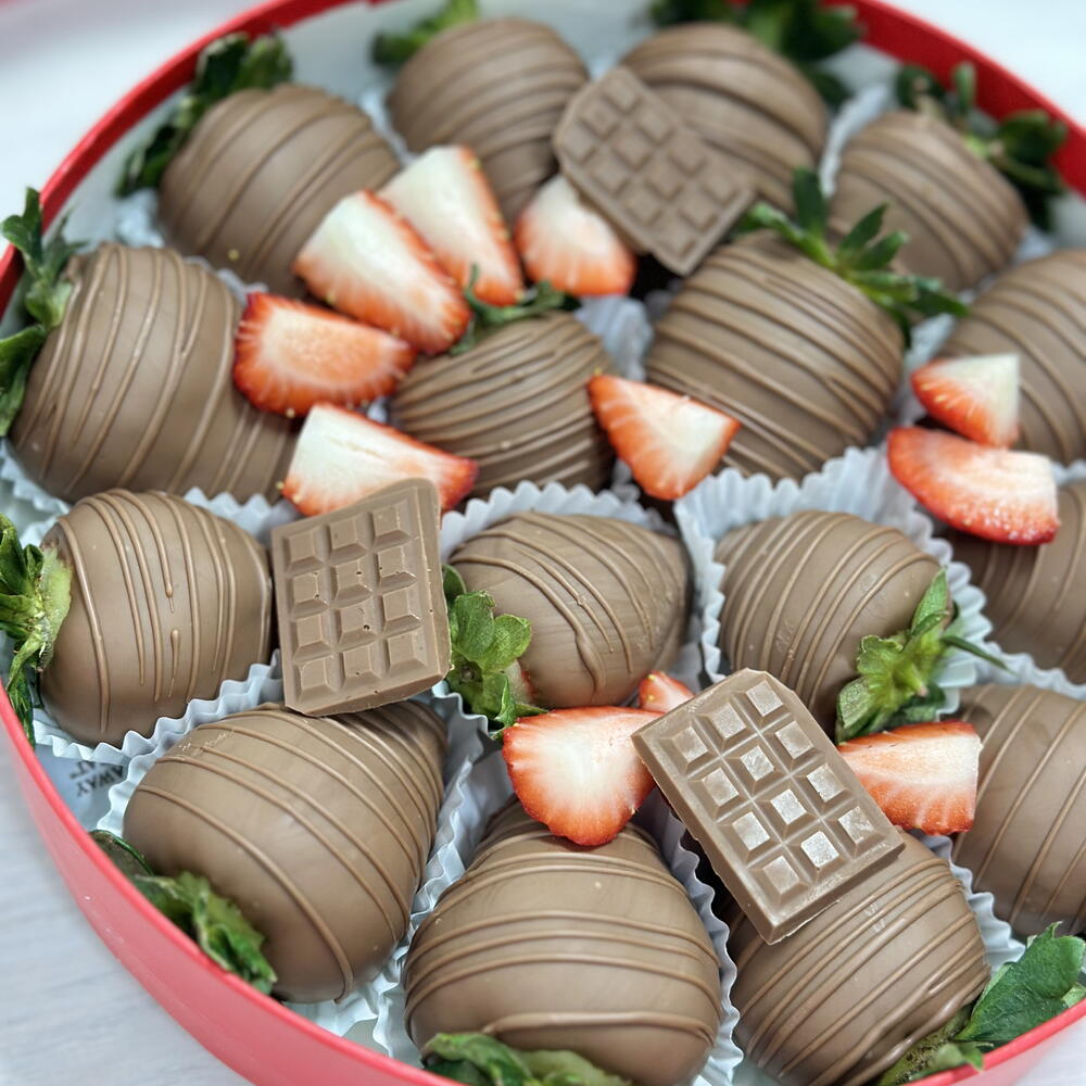 16 клубник в шоколаде с нарезкой и шоколадными фигурками 💗