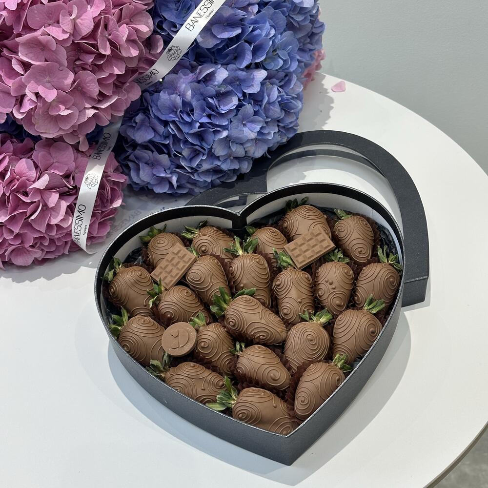 • Клубника свежая - 20-21шт. • Шоколад бельгийский (молочный, белый, розовый) • Молочный шоколад: сахар, какао-масло, сухое молоко, какао тёртое, лецитин (эмульгатор), ванилин.