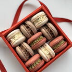 Almond flour , egg white,sugar, Belgian chocolate,glucose syrup