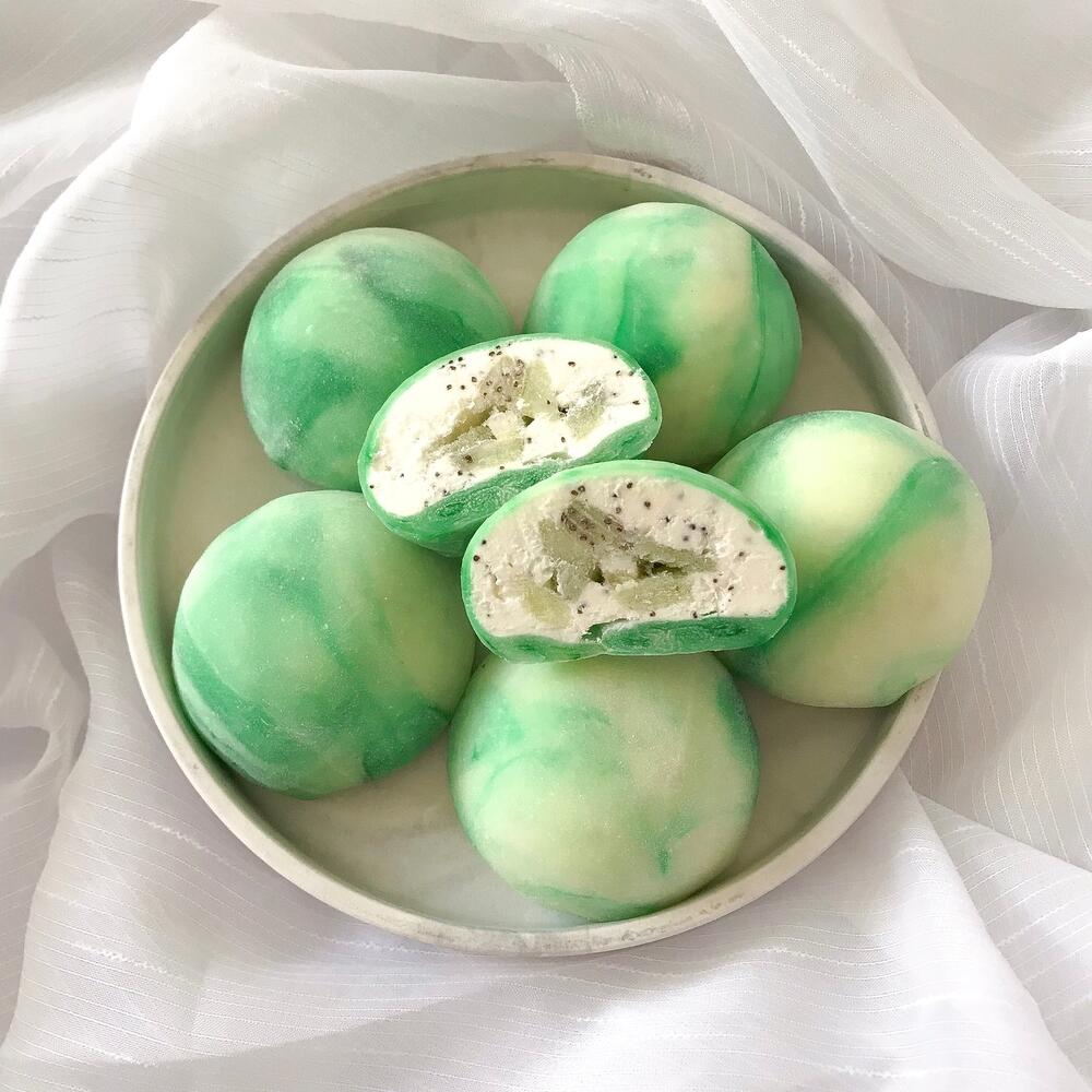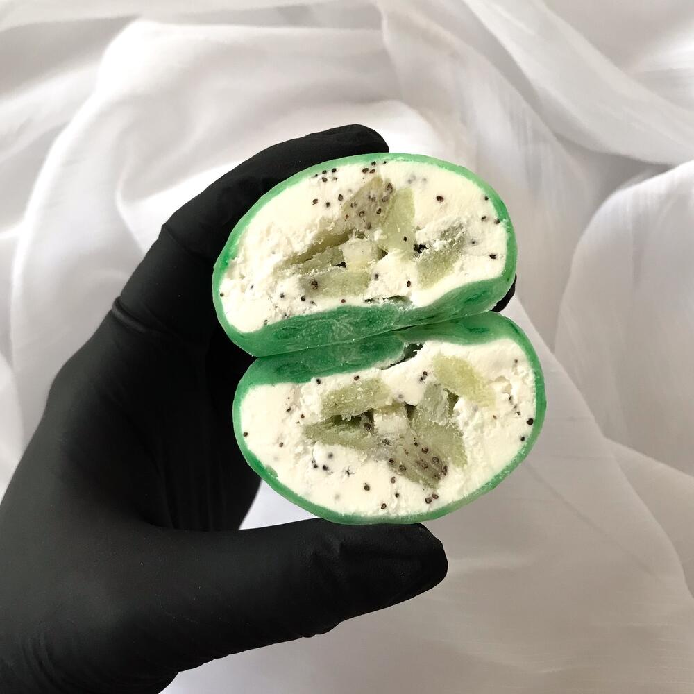 Сливки натуральные,творожный сыр,маскарпоне,пудра,семена мака,киви,рисовое тесто