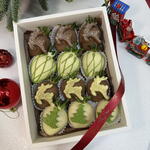 Festive set of carefully selected fresh strawberries coated in real Belgian milk and white chocolate. Each berry is decorated with New Year chocolate decor: reindeer, Christmas trees and delicate patterns, highlighted with elegant gold and green accents. The perfect balance of taste and aesthetics: smooth chocolate, juicy strawberries and handcrafted detail in every element. The box is arranged in a stylish package and finished with a signature ribbon — a ready-made gift that needs no words Ideal for New Year's greetings, corporate gifting or a warm token of appreciation