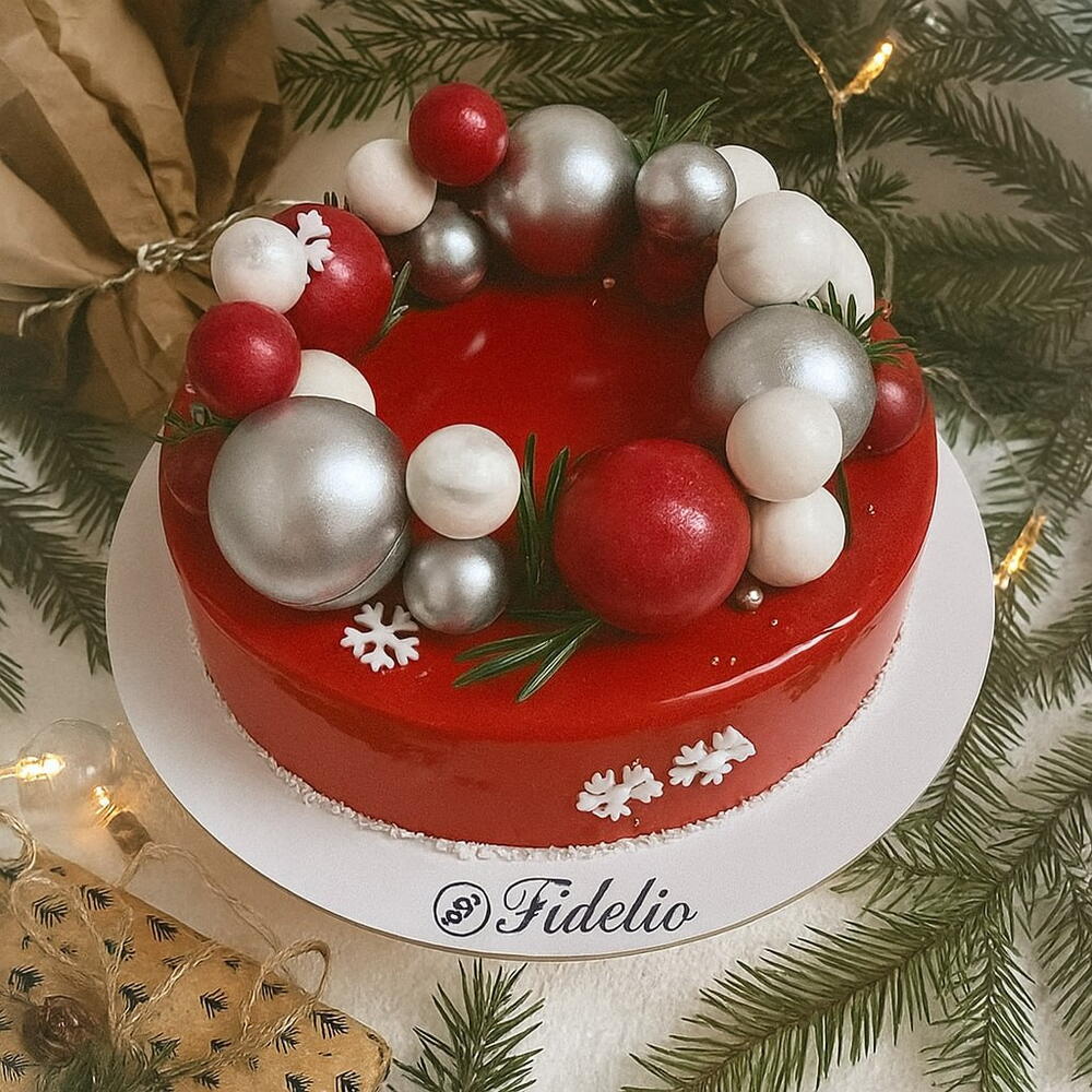 Праздничный новогодний торт, выполненный в тёплой зимней стилистике. Нежный бисквит и крем создают гармоничный вкус, а аккуратный праздничный декор делает десерт ярким акцентом любого новогоднего стола. Идеален для семейного ужина, уютных посиделок или приятного сладкого подарка.