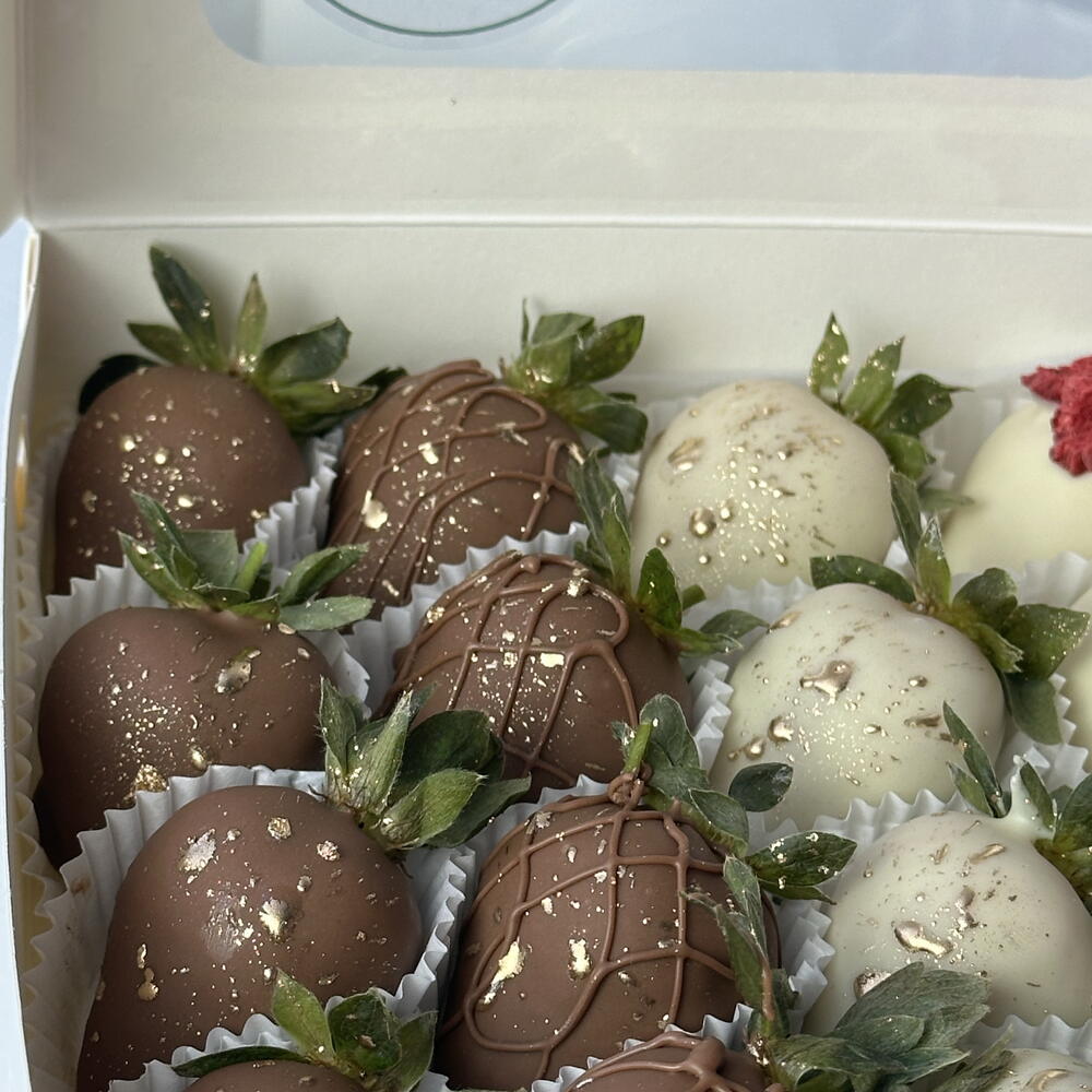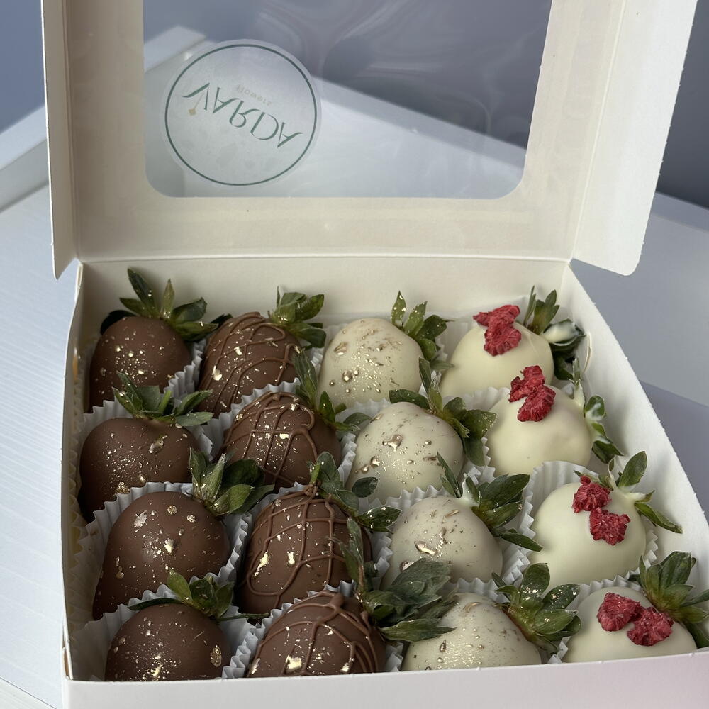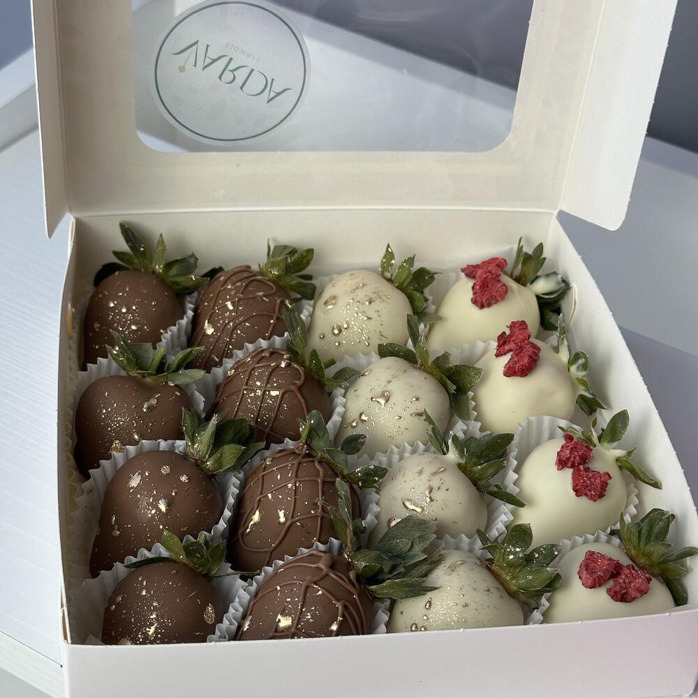 Набор из 16 клубник в шоколаде — изысканный мини-подарок для самых тёплых моментов Стильный набор из 16 отборных, крупных клубник, покрытых нежным бельгийским халал-шоколадом. В коробке собран гармоничный микс вкусов и дизайнов: молочный, тёмный и белый шоколад с аккуратным декором и тонкими узорами. Упаковано в красивую подарочную коробку — аккуратно, эстетично и с настроением праздника. Идеально для: маленького, но значимого подарка, сюрприза любимому человеку, комплимента, визита в гости, корпоративного жеста или просто чтобы поднять настроение. Преимущества набора: • 100% свежая и сладкая клубника • бельгийский халал-шоколад премиум-качества • разное оформление каждой ягоды • стильная подарочная коробка • выглядит эффектно и “дорого”