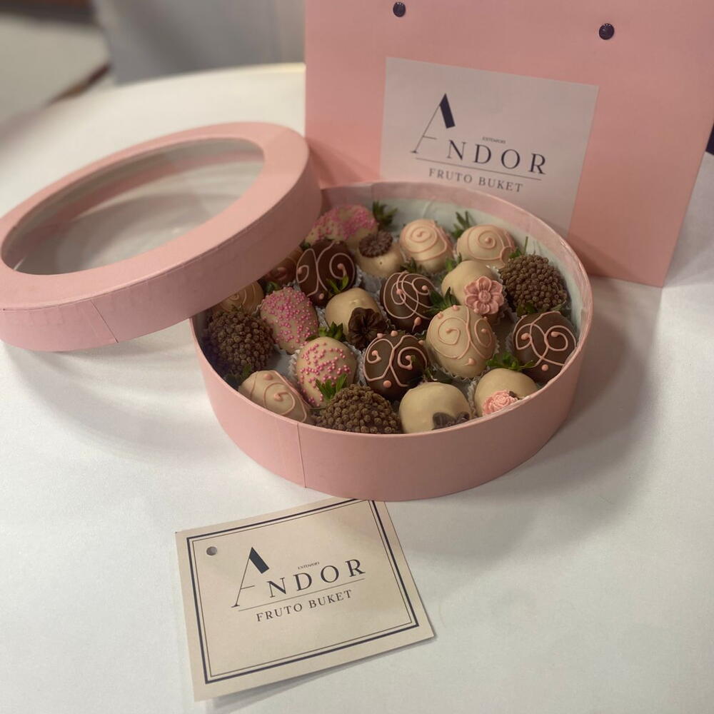 Professional strawberry packaging, branded premium packaging (bag, box), instructions. We also wash each strawberry, which attests to quality.