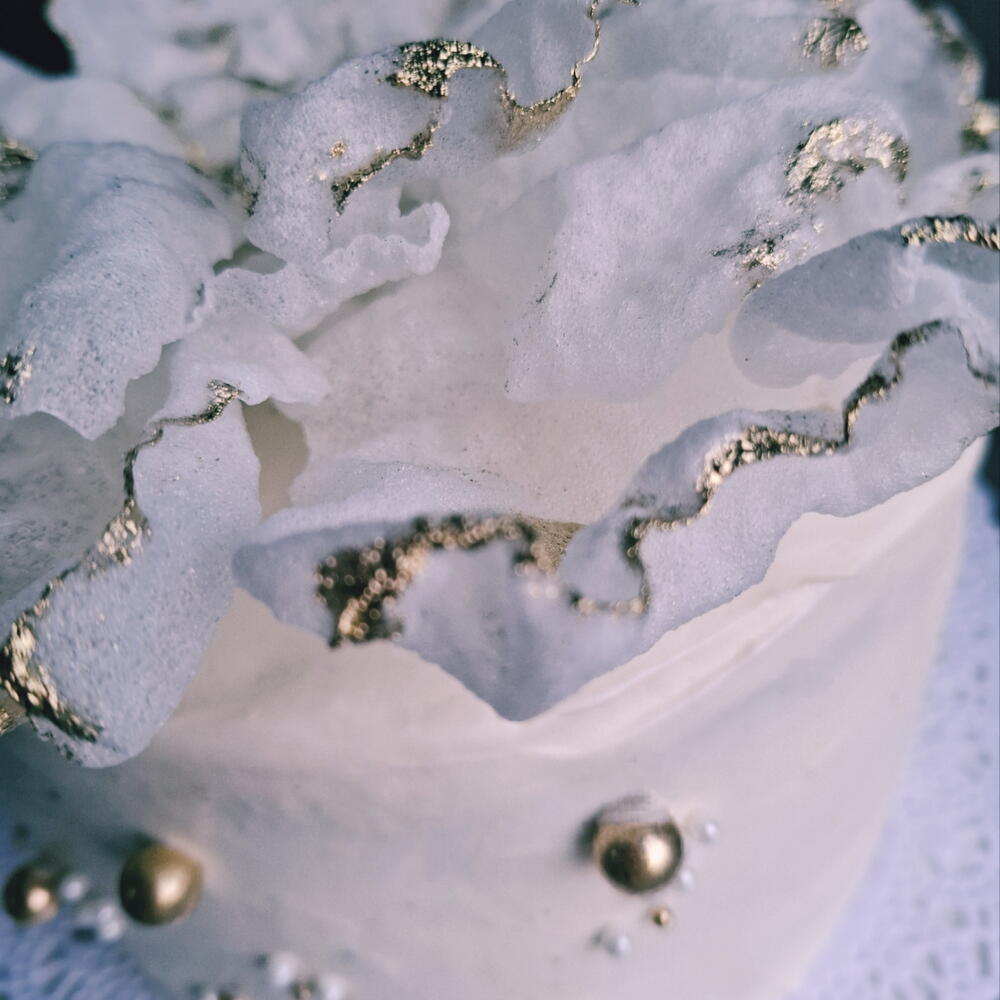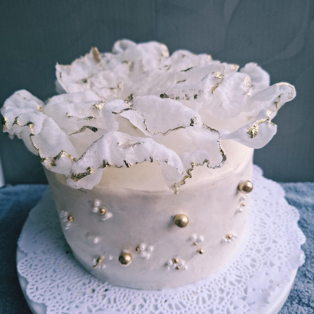 Нежный, ванильный, шифоновый бисквит. Крем чиз. Клубничное кули. Украшен цветком лотоса из рисовый бумаги. Полностью съедобен. Лёгкий дизайн который аодойдет к любому мероприятию и любому возрасту.