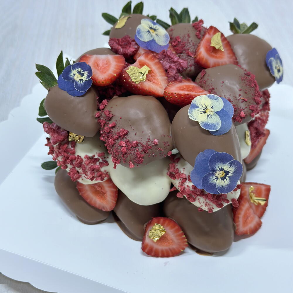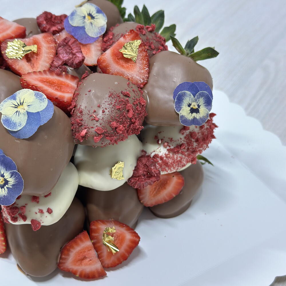 Состав шоколада: какао-масло, тертое какао, сухое цельное молоко, сахар, натуральные лецитин и ваниль. Происхождение бобов: в основном какао-бобы из Западной Африки, преобладает разновидность Forastero. Сублимированная малина, сусальное золото, сушенные цветы