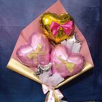 Букет из фольгированных мини шаров 3 сердечек и 2 звёздочек в розово золотой гамме