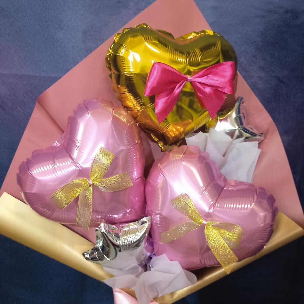 Букет из фольгированных мини шаров 3 сердечек и 2 звёздочек в розово золотой гамме