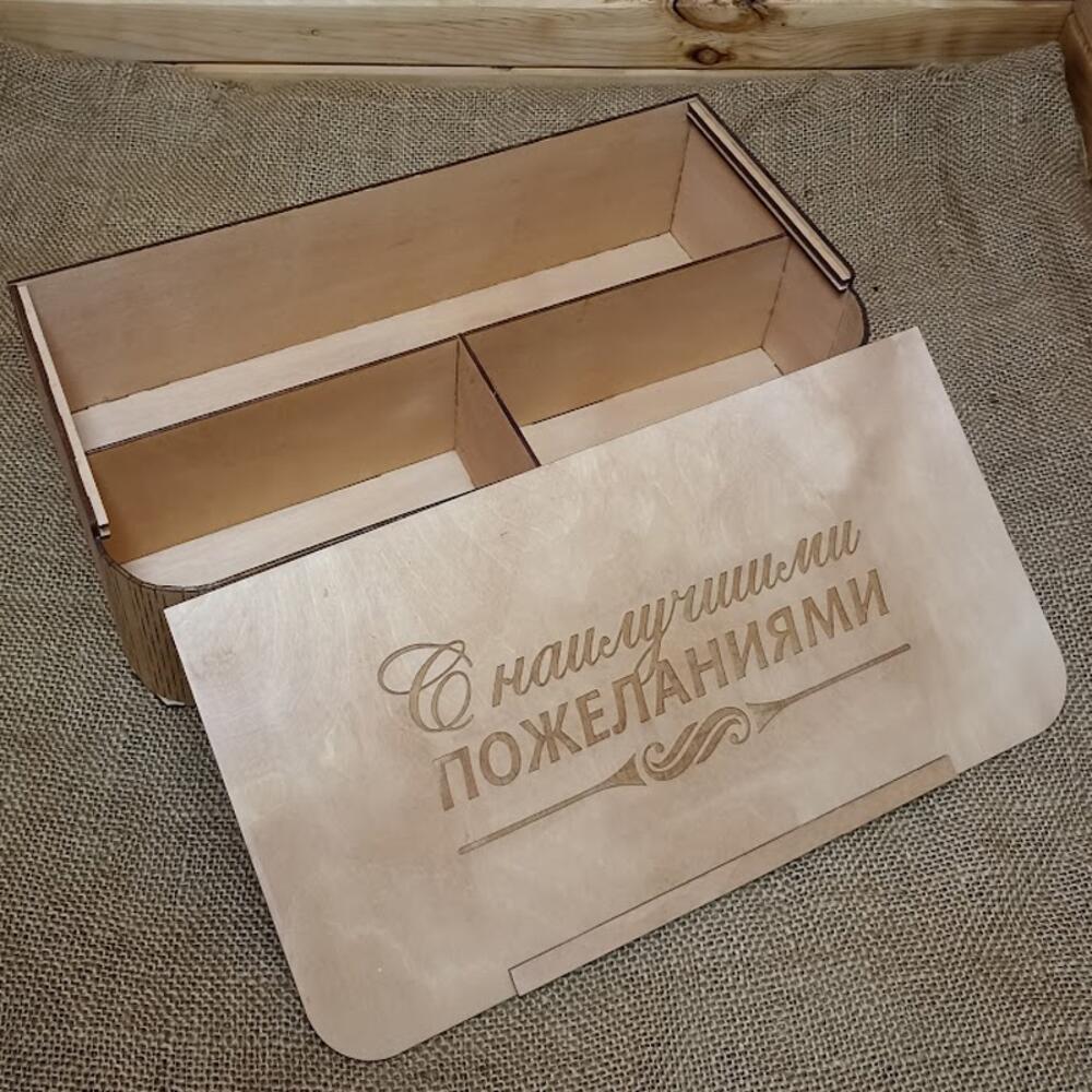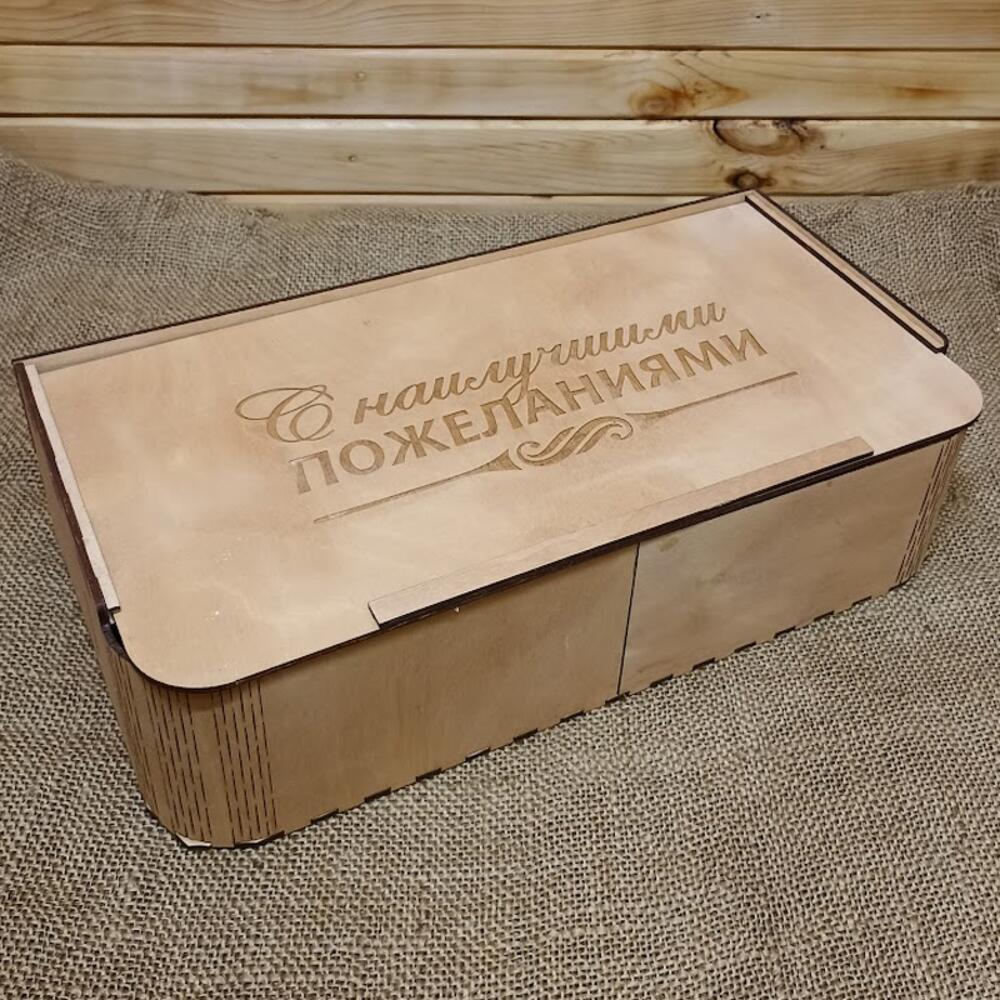 Подарочный бокс из березовой фанеры с выдвижной крышкой – это стильный и практичный способ преподнести подарок, который запомнится надолго. Изготовленный из экологически чистого материала, бокс станет не только упаковкой, но и частью подарка, который можно использовать для хранения различных вещей. Бокс имеет три отделения: одно большое предназначено для бутылки вина, а два маленьких – для бокалов, угощений или других подарков. Выдвижная крышка обеспечивает удобный доступ к содержимому бокса. Вместительность бокса позволяет разместить в нем бутылку вина стандартного размера, два бокала и дополнительные подарки, такие как штопор, конфеты или другие угощения. Подарочный бокс из березовой фанеры с выдвижной крышкой – это отличный выбор для тех, кто хочет сделать оригинальный и запоминающийся подарок для любителей вина и ценителей стильных вещей. Изделие выполнено только из экологичных материалов. Внешний размер (Ш * Г * В): 35 * 18 * 9 см Артикул: WW03017