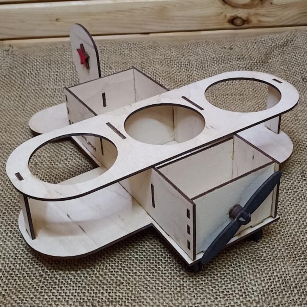 Этот минибар в форме самолета станет идеальным подарком для любителей авиации и ценителей хорошего пива. Изготовленный из экологичной березовой фанеры, он не только стильно выглядит, но и отличается прочностью и долговечностью. Минибар Самолёт вмещает три банки пива объемом 0,45 мл, которые надежно фиксируются в специальных отсеках. Два дополнительных отделения предназначены для размещения закусок – орешков, чипсов или вяленого мяса. Компактный размер позволяет легко разместить минибар на столе или полке. Подарочный минибар Самолёт – это не просто оригинальный способ преподнести напитки и закуски, но и стильный элемент декора, который подчеркнет индивидуальность интерьера и станет поводом для приятных воспоминаний. Предназначен для стандартных банок объёмом 0,45 л (диаметр 63 мм). Изделие выполнено только из экологичных материалов. Размер (Ш * Г * В): 26 * 25 * 11 см