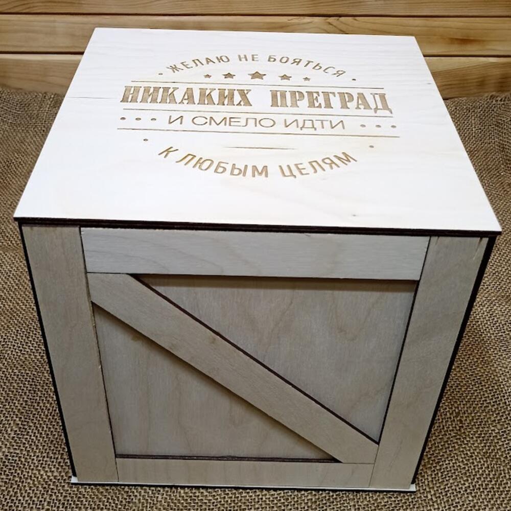 Подарочный ящик из березовой фанеры с гравировкой на крышке – это стильный и практичный способ преподнести подарок, который запомнится надолго. Изготовленный из экологически чистого материала, ящик станет не только упаковкой, но и частью подарка, который можно использовать для хранения различных вещей. Вместительность ящика позволяет разместить в нем подарки различных размеров и форм. Он подойдет для хранения украшений, аксессуаров, косметики, книг, сувениров и других вещей. Подарочный ящик из березовой фанеры с гравировкой – это отличный выбор для тех, кто хочет сделать оригинальный и запоминающийся подарок. Изделие выполнено только из экологичных материалов. Внешний размер (Ш * Г * В): 21 * 21 * 21 см