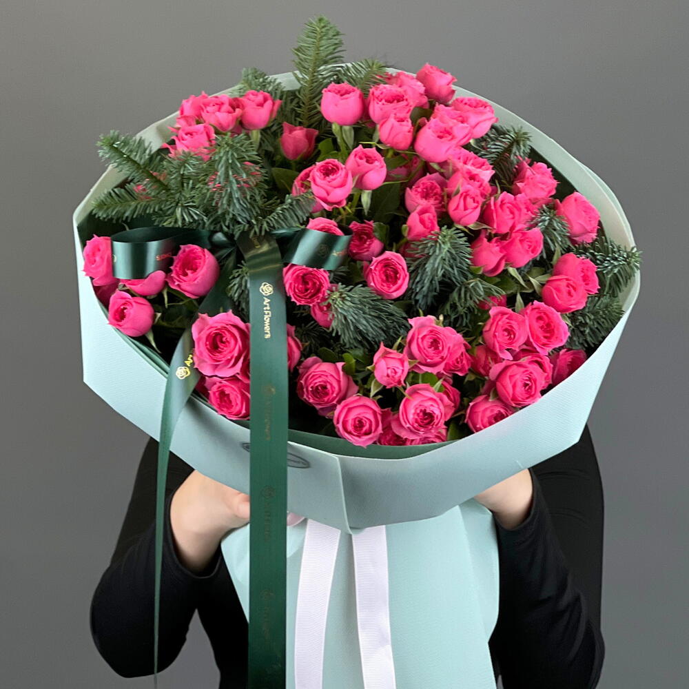 Сочный, энергичный букет для тех, кто любит яркость. Кустовые розы насыщенного малинового оттенка создают плотную, роскошную форму и мгновенно притягивают взгляд. Подарок, который вызывает эмоции и поднимает настроение.