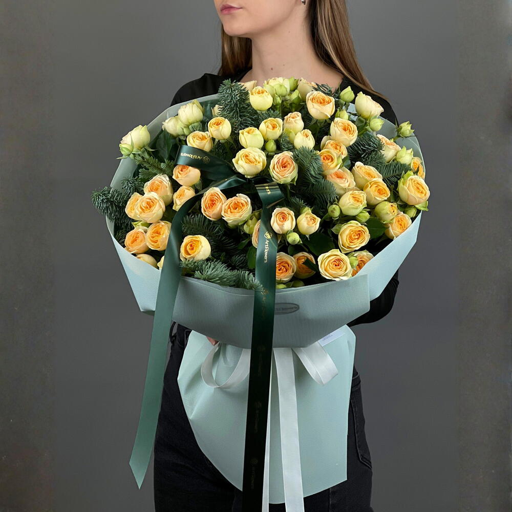 Тёплый и солнечный букет в мягких жёлтых оттенках. Символ радости, успеха и поддержки — идеален для подарка друзьям, коллегам, учителям или близким. Оформление — стильная дизайнерская упаковка в пастельных тонах.