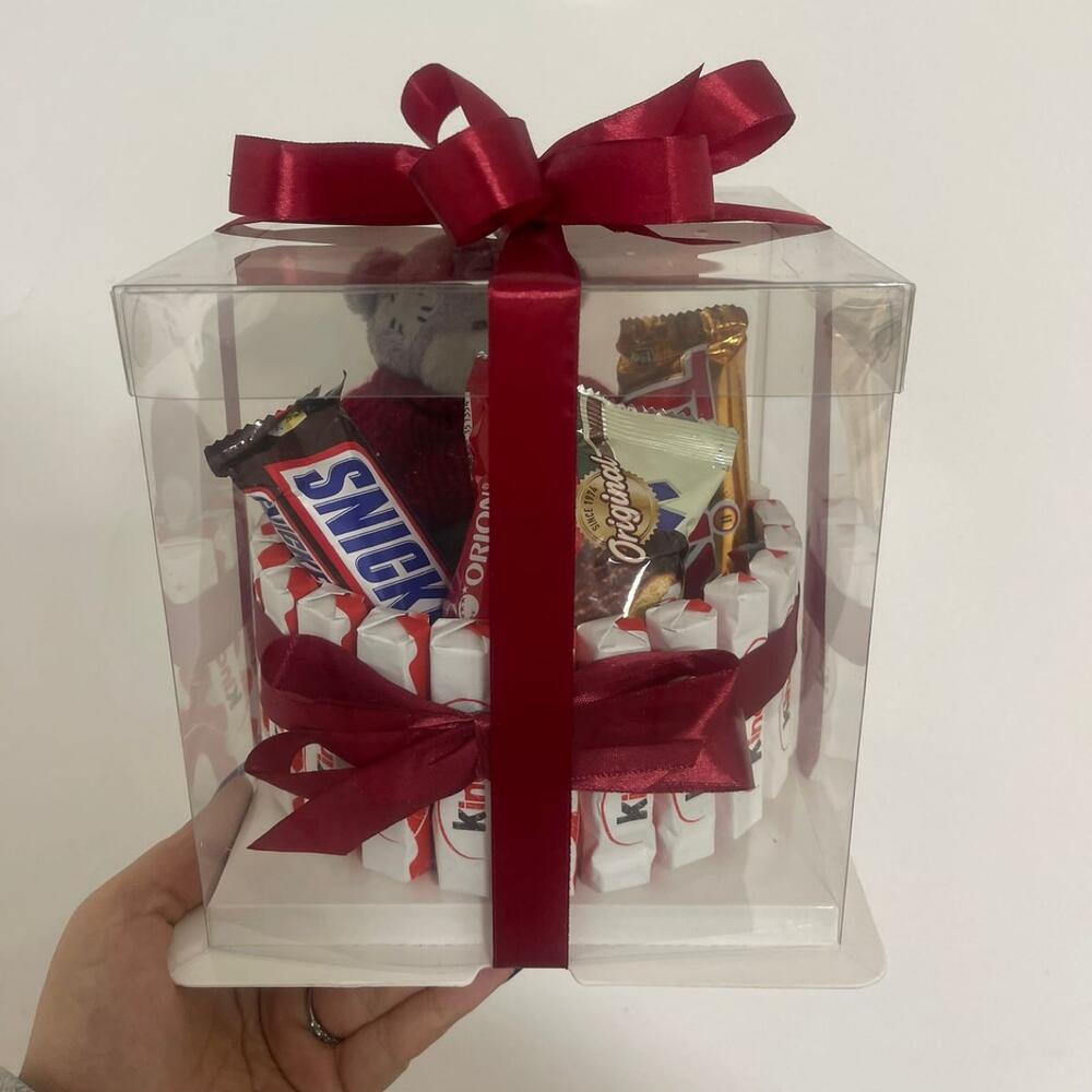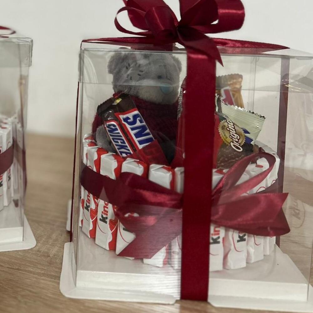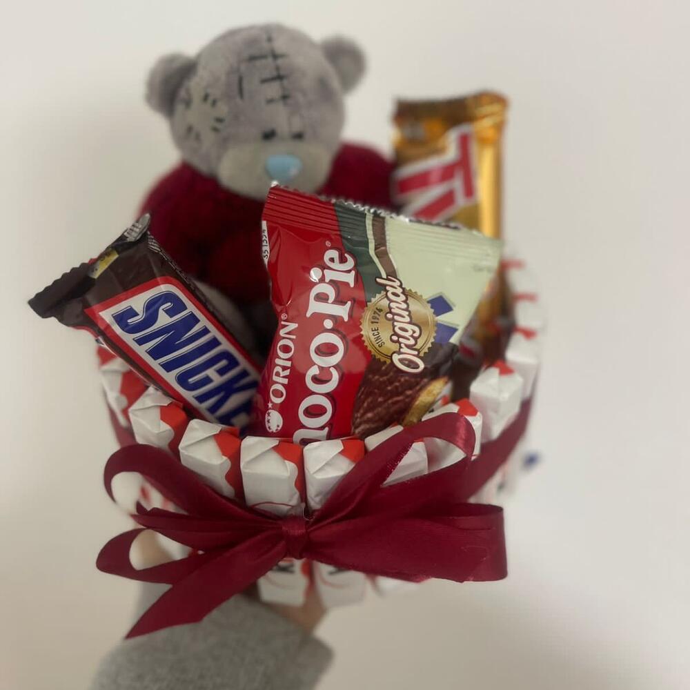 Snickers - 1 pcs Kinder chocolate - 24 pcs Chokopai - 1 pcs Teddy Teddy bear - 1 pcs