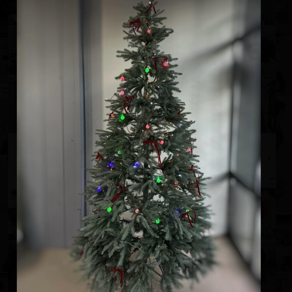 Новогодняя елка, украшенная гирляндой и бантами🎄 Создайте дома атмосферу Рождества с нашей стильной зимней композицией. Свежая хвоя, изысканные украшения и мягкие зимние оттенки наполняют пространство теплом и волшебством. Прекрасный выбор для праздничного стола, каминной зоны или в качестве продуманного подарка близким.