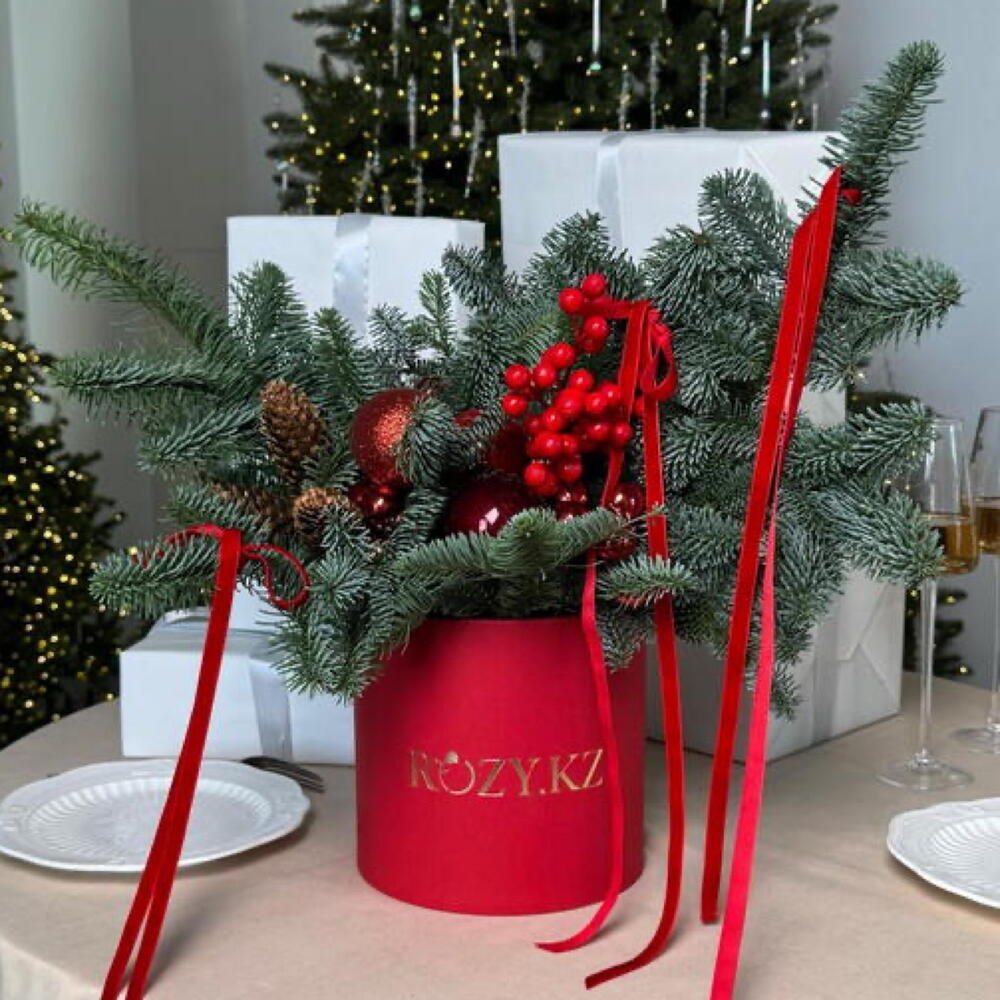 Floral oasis - 1 pcs New Year's toys - 15 pcs artificial Ilex - 1 pcs нобилис м - 2 pcs коробка м размер - 1 pcs