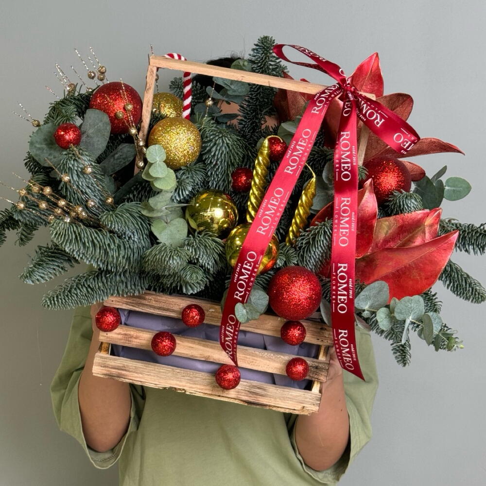 Magnolia - 2 pcs Eucalyptus Mix - 2 pcs Nobilis - 3 pcs New Year's candle - 2 pcs Christmas tree toys - 15 pcs
