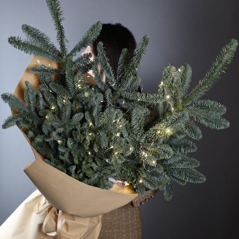 Пять веток нобилиса в крафте + гирлянда