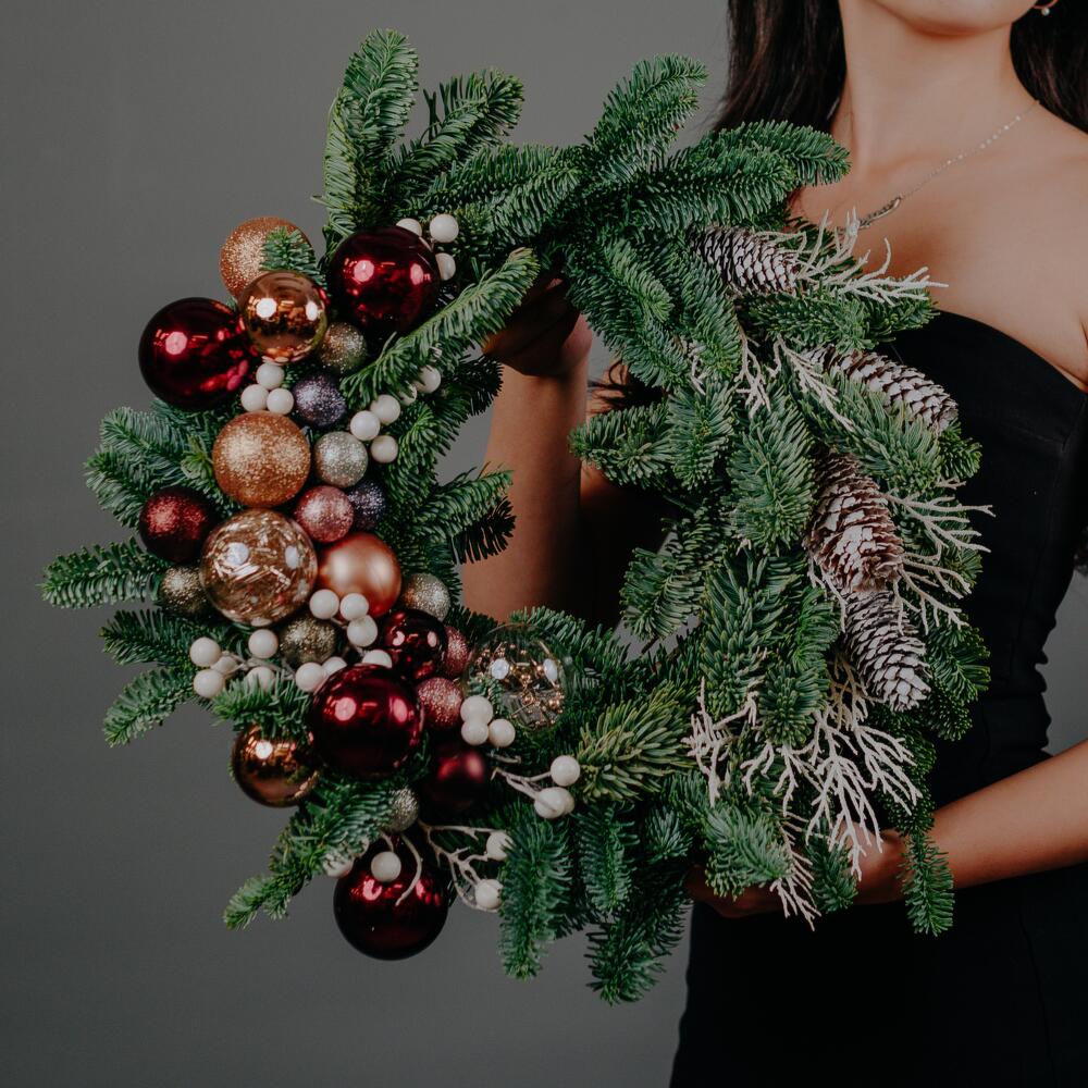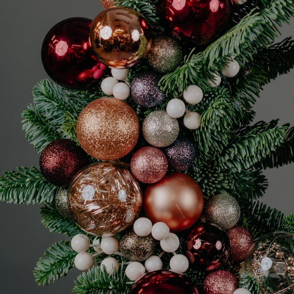 Cone - 4 pcs Nobilis - 3 pcs Branch - 2 pcs Wreath - 1 pcs The ball - 8 pcs