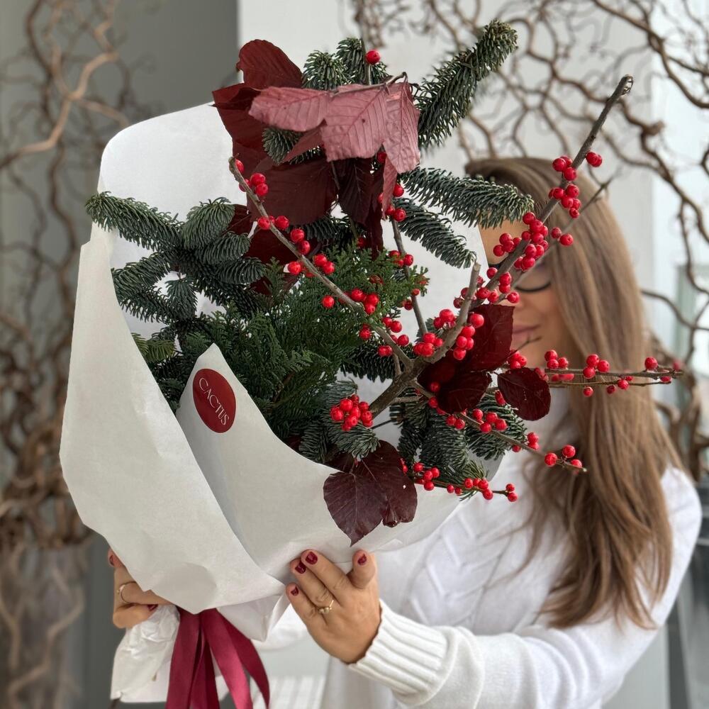 Рождественский / Новогодний банч Ароматная Новогодняя , а также Рождественская композиция из зимней хвои , станет чудесным подарком к празднику.