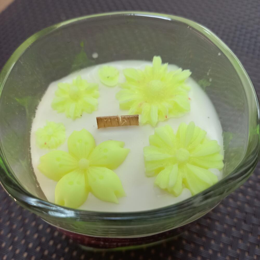Арома-свеча. Аромат - лимонная шипучка. Материал подсвечника - стекло. Материал свечи - соевый воск. Фитиль деревянный. Объём 100мл. Время горения до 15 часов.