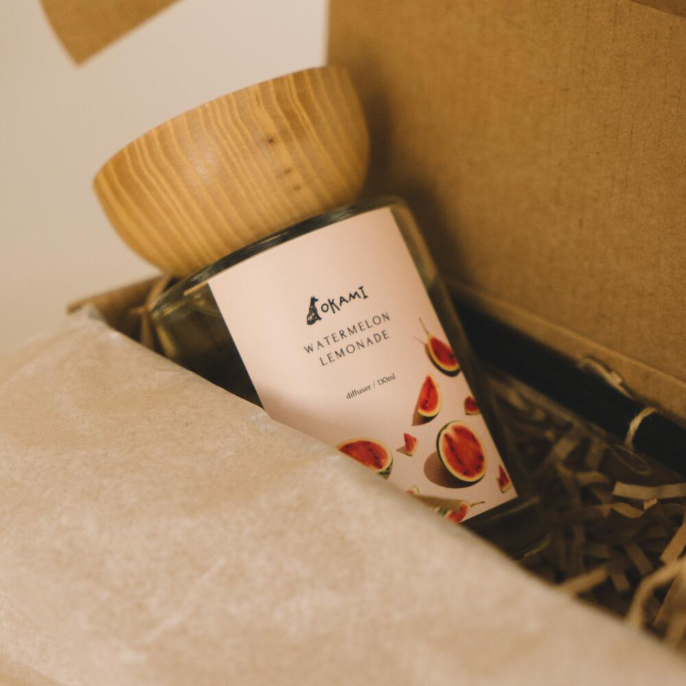 Maison Okami aromatic diffuser - an excellent way to provide long-lasting fragrance to a room! Scent Watermelon Lemonade - the perfect balance of tart and sweet - a nostalgic summer scent. Juicy watermelon, lemon and green leaves form the iconic top notes. Ripe strawberry and pineapple add candied sweetness, while gardenia lends an intoxicating depth to the heart notes. Sugar and vanilla create a soft base to balance this refreshing scent.