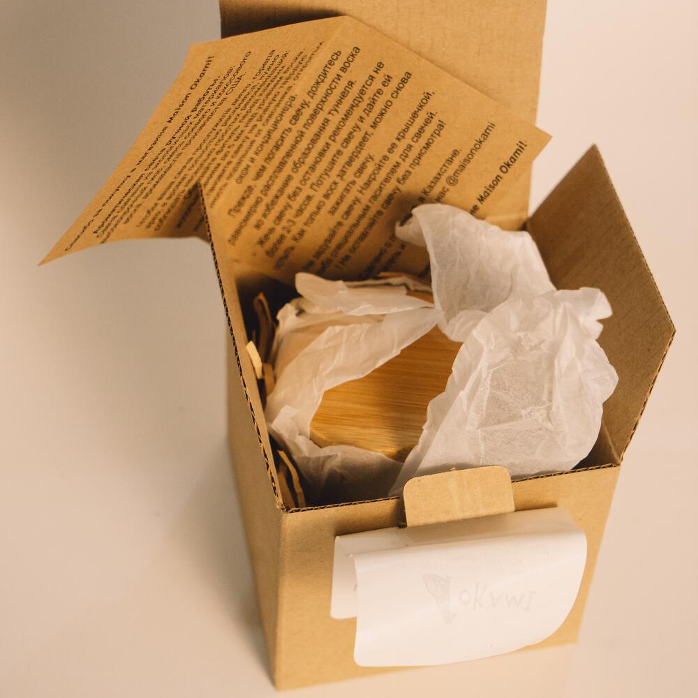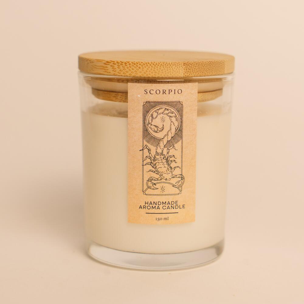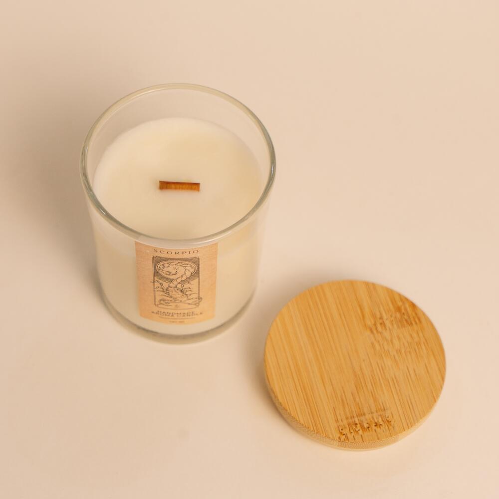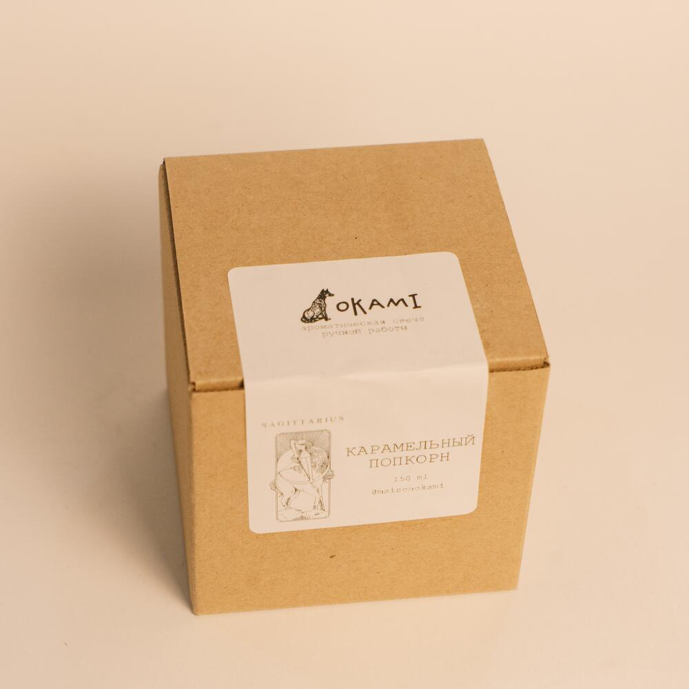 Имеются все 12 знаков зодиака, и три аромата. Ароматические свечи выполнены Okami из экологически чистых материалов: Соевый и кокосовый воск - природные материалы, которые при горении не выделяют токсичных веществ; Сертифицированные ароматические масла производства США. На выбор имеются 3 аромата: 1- Дымный уд - тёплый древесный букет, создающий умиротворенную и загадочную атмосферу. Верхние ноты: ладан, мята Средние ноты: дым Базовые ноты: ладан, мирра, янтарь, мускус и кожа. 2- Карамельный попкорн - насыщенный сладкий аромат. Верхние ноты: сливочное масло, морская соль Средние ноты: попкорн, кокос Базовые ноты: ваниль, карамель. 3- Жареный кокос - нежный аромат Баунти. Верхние ноты: кокосовое молоко, миндаль Средние ноты: кокос, карамелизированный сахар Базовые ноты: кокосовое молоко, бобы тонка, сливки.