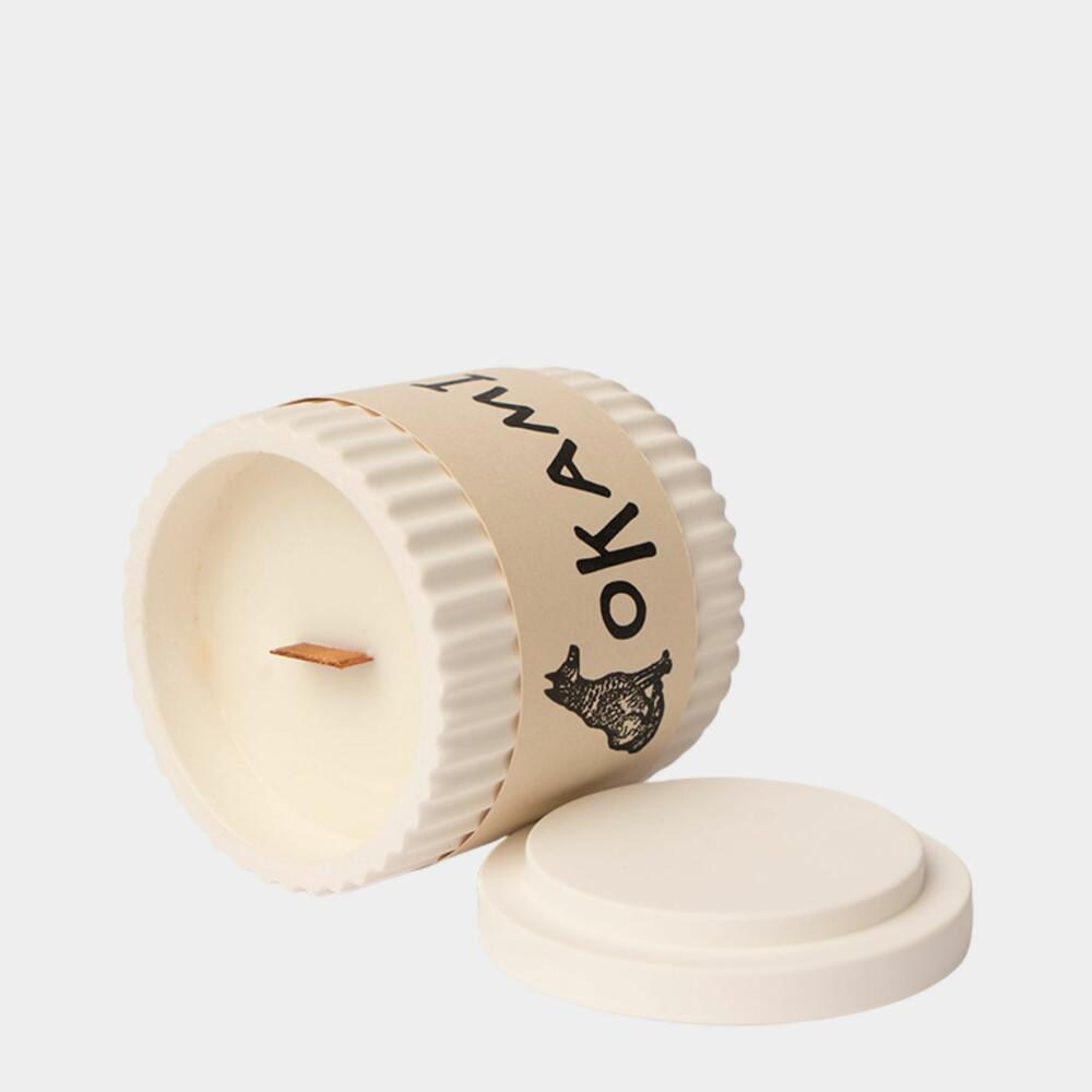 Ароматические свечи Okami выполнены из экологически чистых материалов: 1. Гипс - натуральный минерал; 2. Соевый и кокосовый воск - природные материалы, которые при горении не выделяют токсичных веществ; 3. Сертифицированные ароматические масла производства США. На выбор имеются 6 ароматов: 1- Дымный уд - тёплый древесный букет, создающий умиротворенную и загадочную атмосферу. Верхние ноты: ладан, мята Средние ноты: дым Базовые ноты: ладан, мирра, янтарь, мускус и кожа. 2- Красное дерево Ши - аромат роскоши и богатства. Верхние ноты: миндаль Средние ноты: масло ши, кокос, янтарь Базовые ноты: сандаловое дерево, кедр, мускус, тонка, древесина 3- Пряный имбирь - создает атмосферу праздника. Верхние ноты: лимон, апельсин Средние ноты: имбирь, сахар Базовые ноты: ваниль, корица, гвоздика, мускатный орех, душистый перец. 4- Карамельный попкорн - насыщенный сладкий аромат. Верхние ноты: сливочное масло, морская соль Средние ноты: попкорн, кокос Базовые ноты: ваниль, карамель. 5- Ванильное мороженое - сладкий аромат. Верхние ноты: сливочный крем Средние ноты: ваниль, торт Базовые ноты: сахар, бурбон. 6- Жареный кокос - нежный аромат Баунти. Верхние ноты: кокосовое молоко, миндаль Средние ноты: кокос, карамелизированный сахар Базовые ноты: кокосовое молоко, бобы тонка, сливки.