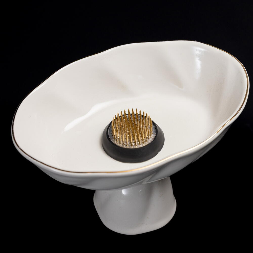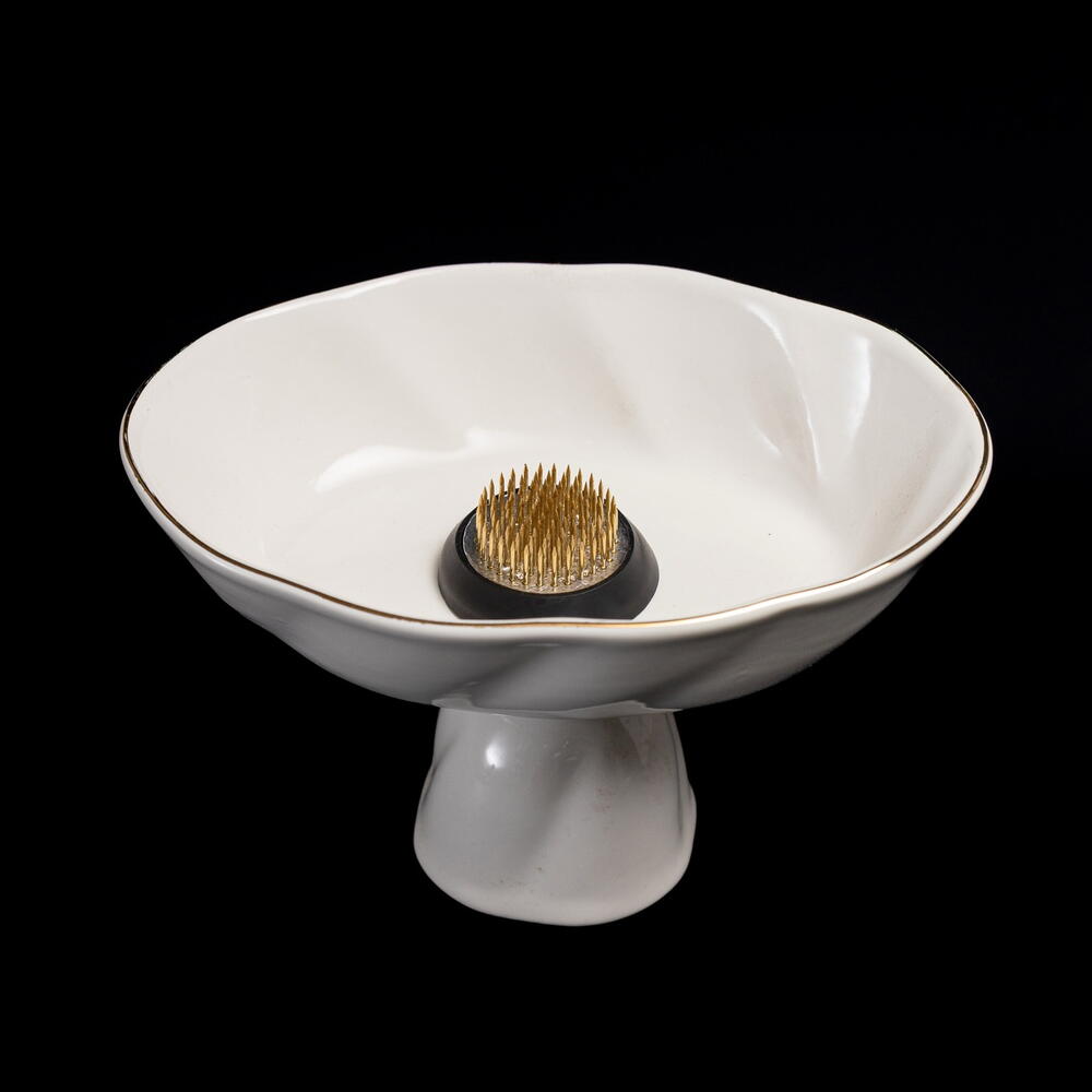 Ваза с кензами, выполненная из высококачественной керамики, сочетает в себе прочность и элегантность. Её текстура, небольшие ноги и дизайн добавляют особый шарм вашему интерьеру. В комплект идет кензан d - 3cm, диаметр вазы 19 см.