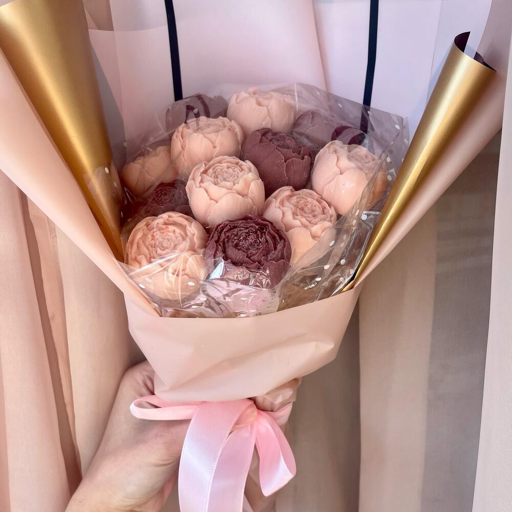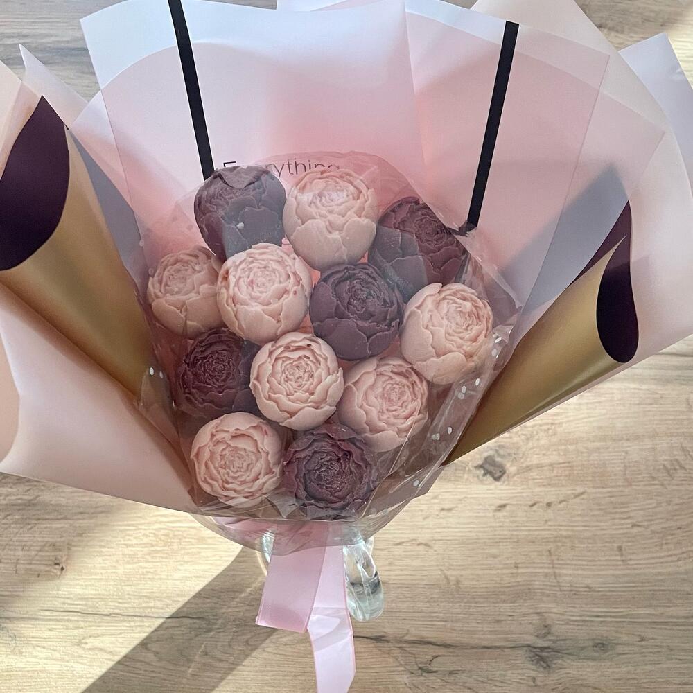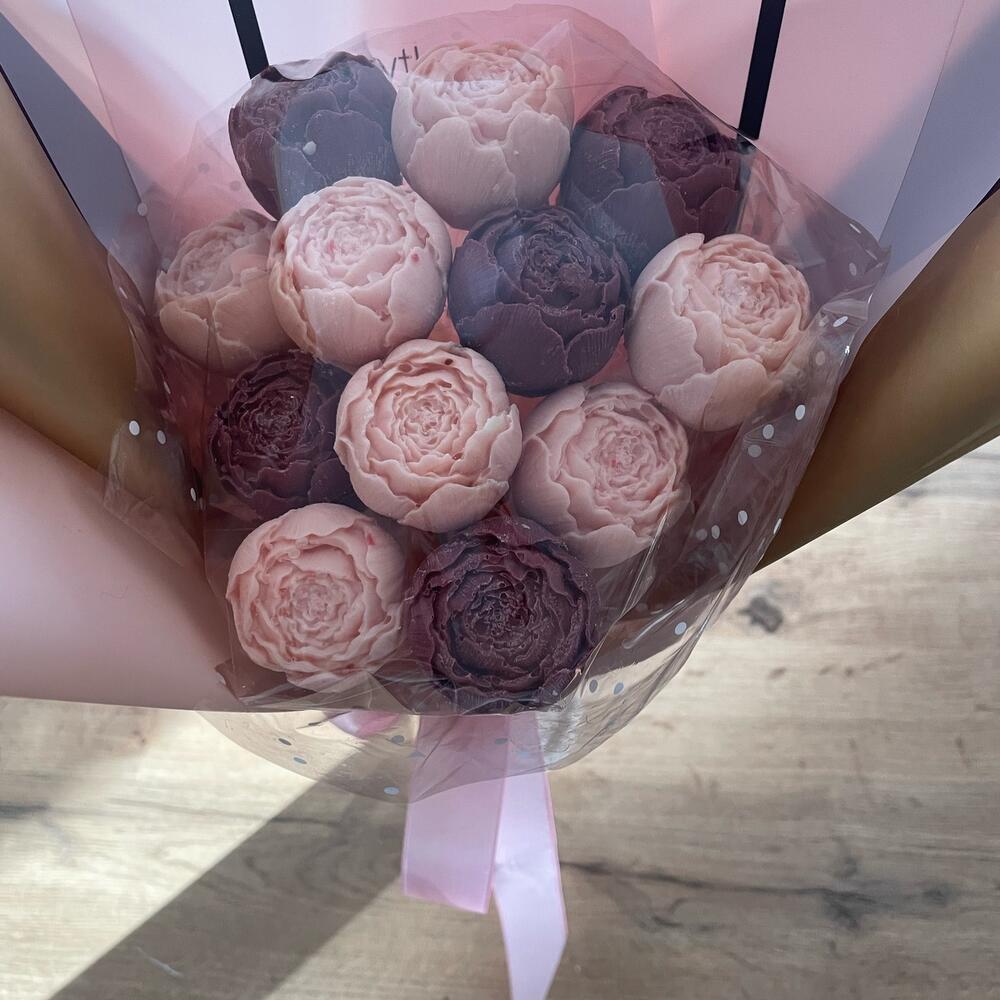 Пионы из белого бельгийского шоколада ручной работы, 11 шт. В шоколад добавлены орехи и сухофрукты