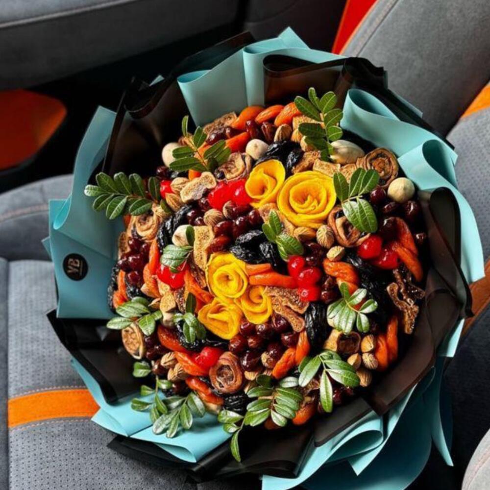 Fig - 150 g Almond - 100 g Dried apricots - 200 g Prunes - 200 g Dates - 200 pcs pecan - 100 g dried cherries - 100 g hashtag - 5 pcs манго розы - 5 pcs