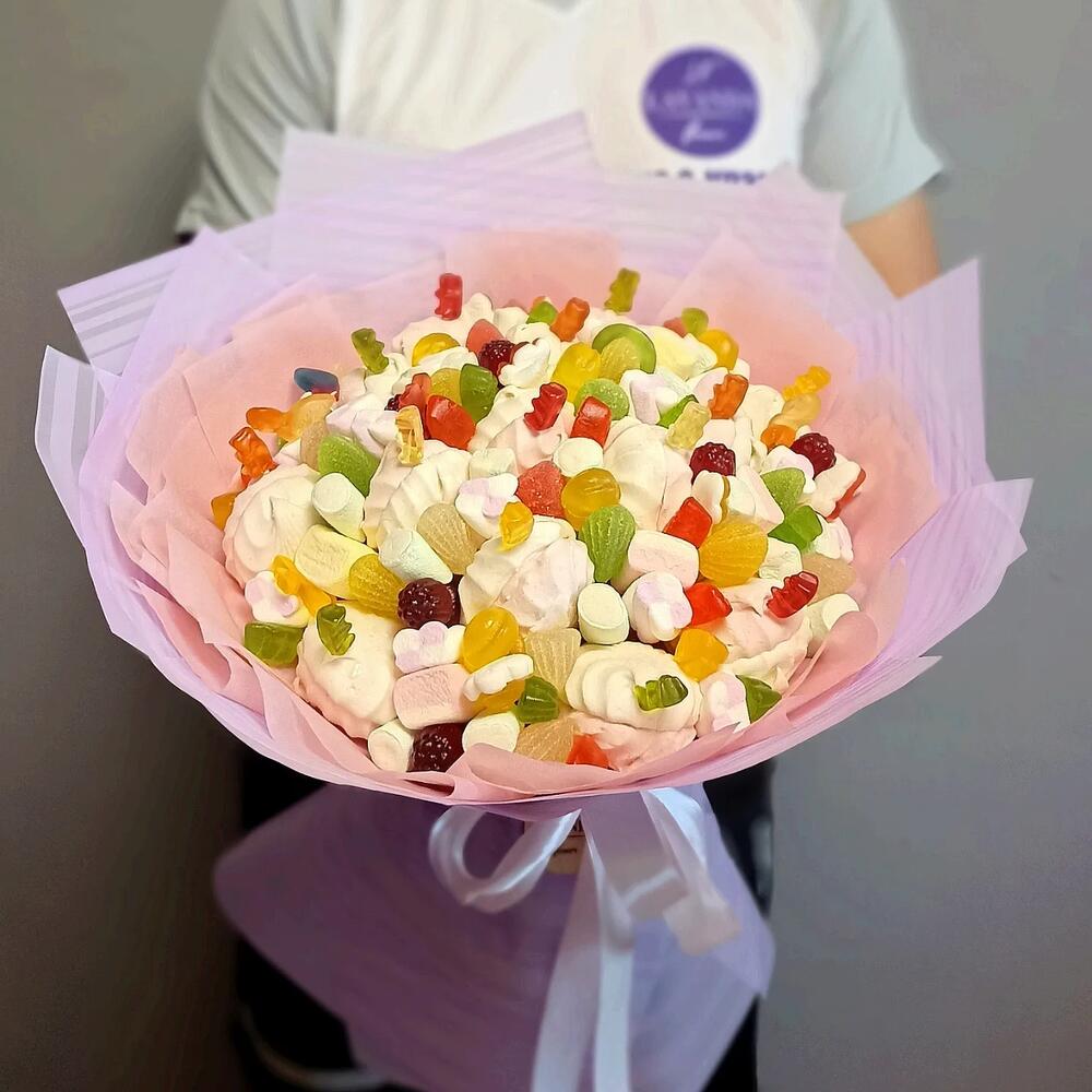 Marshmallows - 15 pcs Designer packaging - 2 pcs Marshmallow - 35 pcs Marmalade - 50 pcs жевательный мармелад (пачка) - 2 pcs