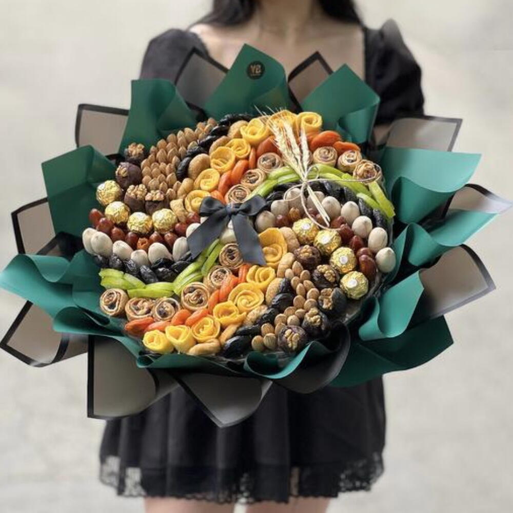 Брутальный и полезный букет из отборных сухофруктов - всё, что нужно для бодрости, силы и отличного настроения. Ассорти из кураги, инжира, фиников, чернослива, орехов в стильной подаче - отличный подарок для мужчины, который ценит вкус, практичность и заботу о себе. 🎁 Подходит для дня рождения, юбилея, профессионального праздника или просто без повода. Собрано вручную и упаковано с вниманием к деталям.